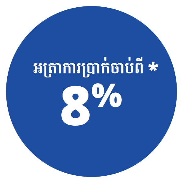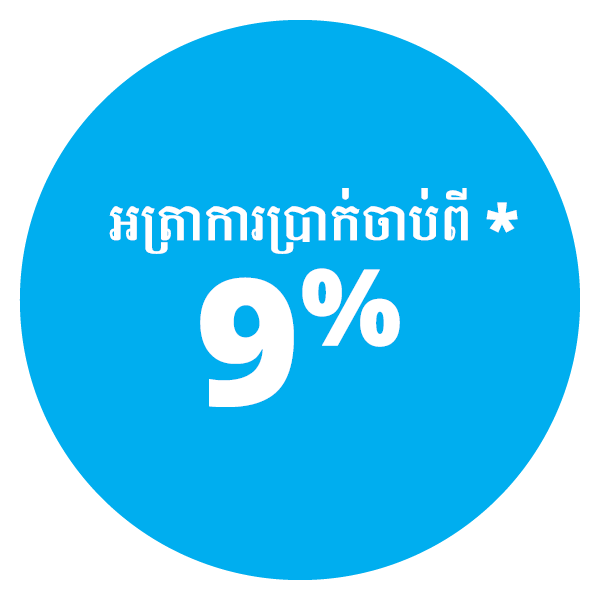 បើករថយន្តថ្មីរបស់អ្នកដោយទំនុកចិត្ត។ រីករាយជាមួយអត្រាការប្រាក់ចាប់ពី 8% ជាមួយនឹងការផ្ដល់ហិរញ្ញប្បទានរហូតដល់ 90% នៃតម្លៃរថយន្តរបស់អ្នក ព្រមទាំងអាចជ្រើសរើសរយៈពេលក្នុងការសងរហូតដល់ 7 ឆ្នាំ។