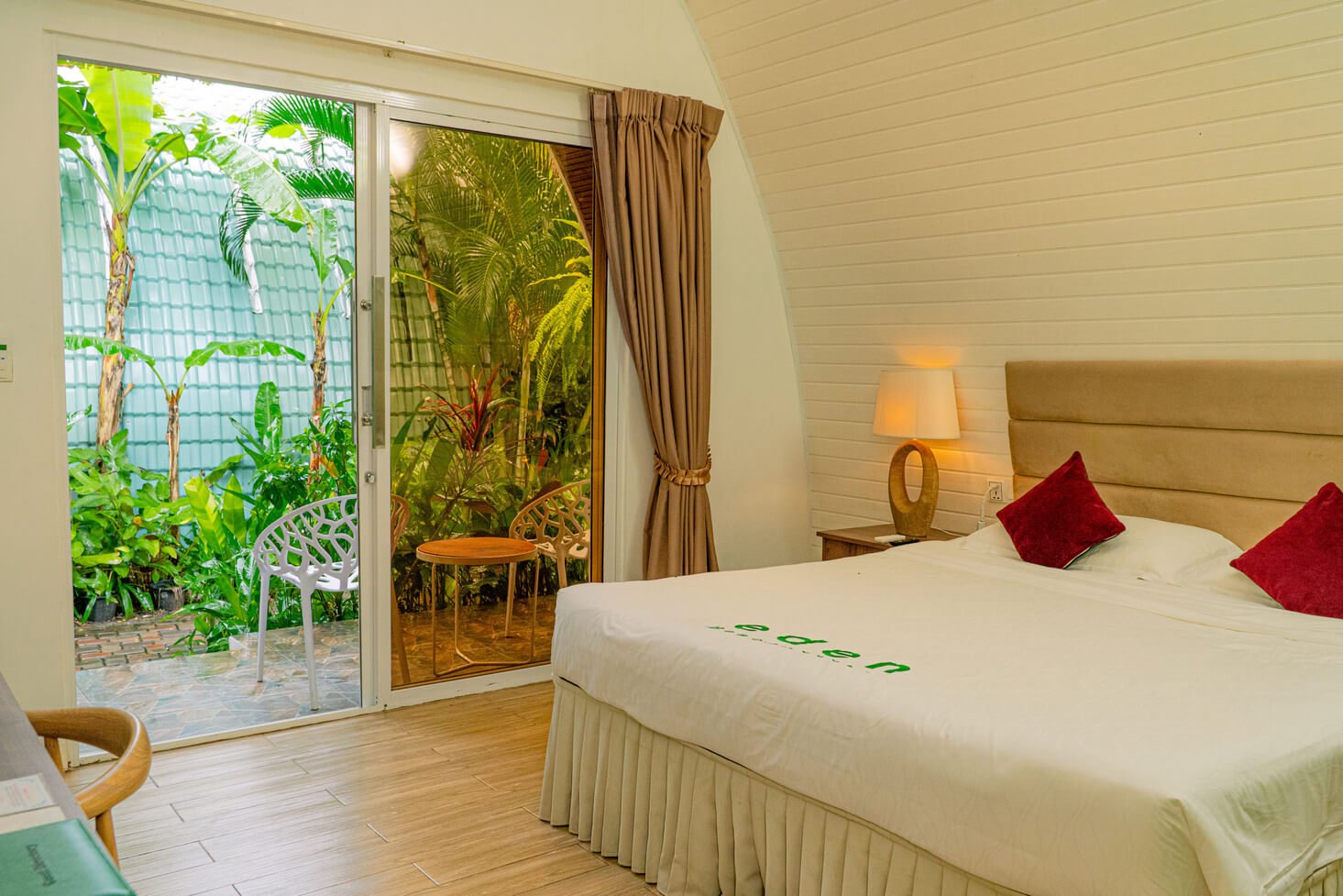 រីករាយដំណើរកម្សាន្តរយៈពេលពីរយប់សម្រាប់មនុស្សពីរនាក់ដែលរួមមានកន្លែងស្នាក់នៅដែលមានរានហាល ឬវ៉េរ៉ង់ដារផ្ទាល់ខ្លួន អាហារពេលព្រឹកប្រចាំថ្ងៃ អាហារពេលល្ងាចមួយពេល ព្រមទាំងសេវាទូកទៅទទួល និងជូនត្រឡប់មកវិញ។